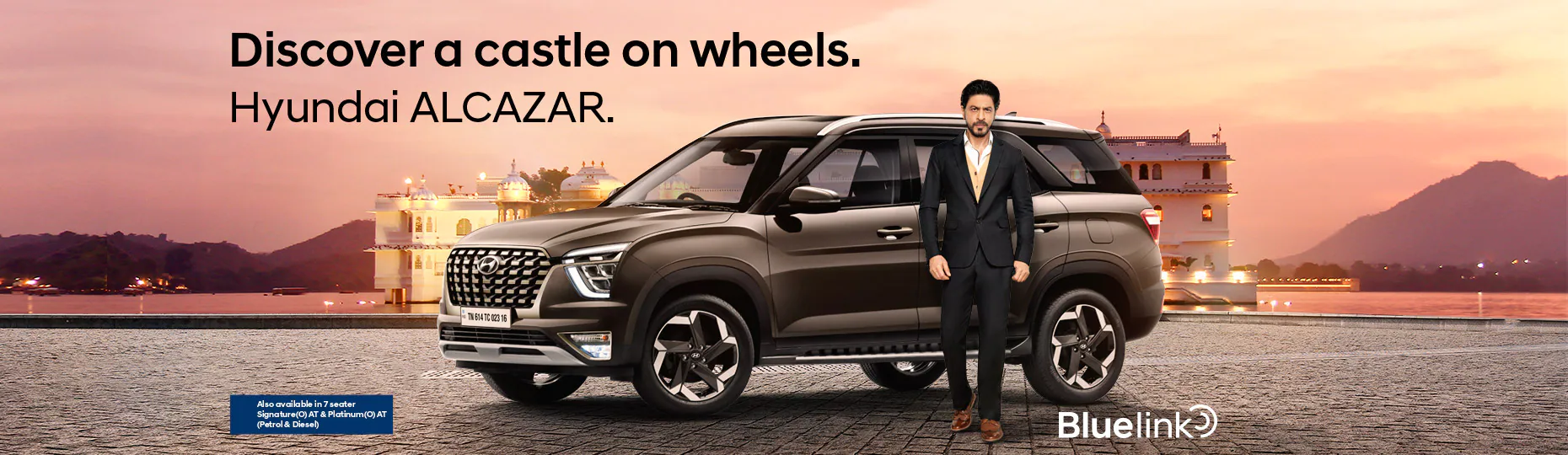 Hyundai ALCAZAR is all set to redefine premiumness, comfort and versatility for an unrivalled travel experience with a host of 1st in segment features like 26.03 cm (10.25”) Multi display digital cluster, Bose premium sound system (8 Speakers), Auto healthy air purifier with AQI display, Front row seatback table with retractable up-holder and IT device holder, Front row sliding sunvisor, Side foot step, Rear window sunshade and much more